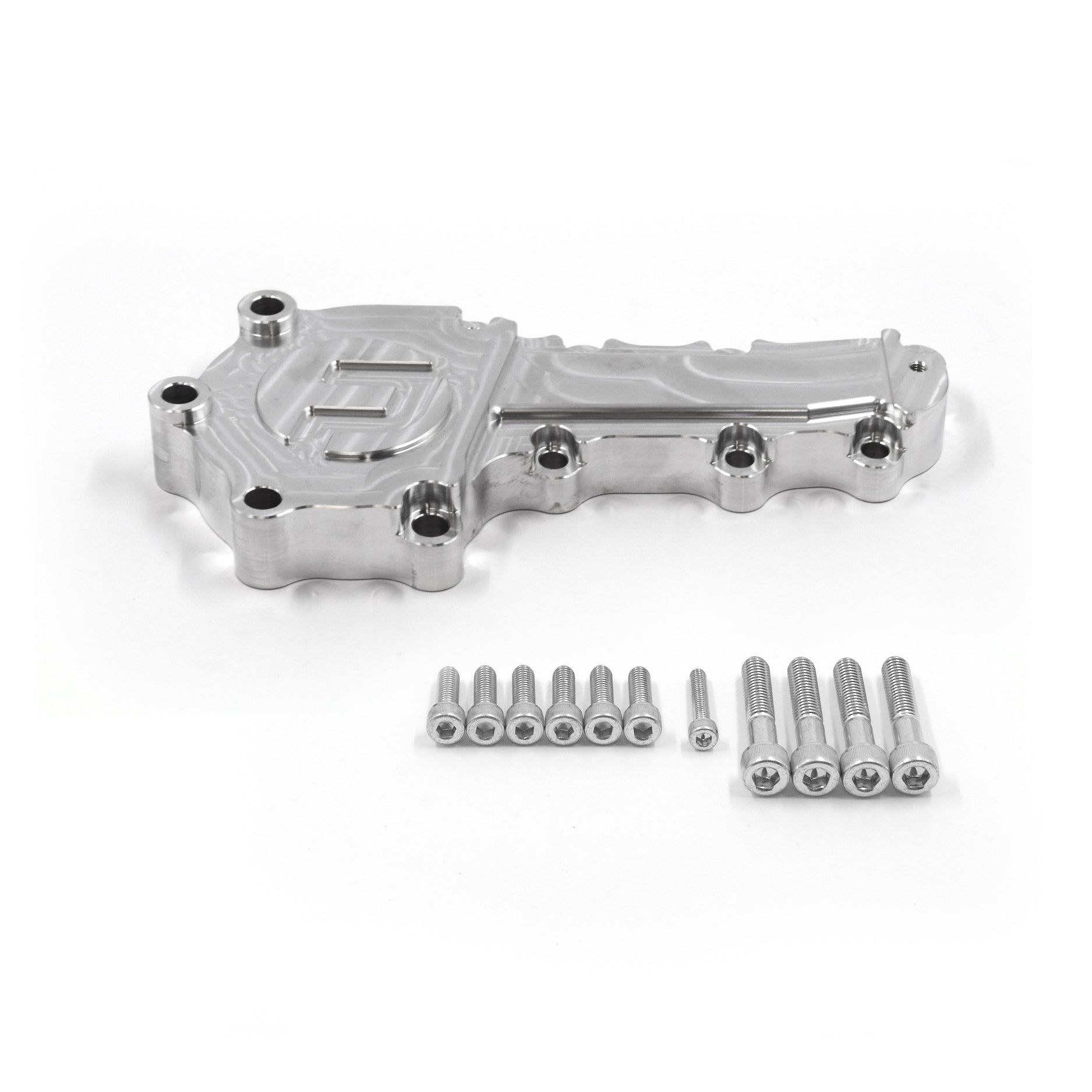 This billet aluminium water pump blanking cover has been designed by Franklin Performance to replace the factory water pump on all Nissan RB engines when running an electric water pump.